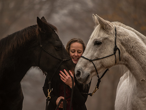 Vanaf 1990 speelt en werkt Aniek met paarden. Zij heeft meerdere paarden gehad. Het begon allemaal met de volbloed arabier Nimrot, vele jaren later kwam daar de merrie Friponne en nog later de ruin Amadeus. Allen verschillende paarden, zowel qua uiterlijk als karakter. (Alhoewel Nimrot en Friponne wel wat overeenkomsten hadden) De laatste 2 heeft zij als 3 -jarigen gekocht en zelf gestart en getraind in Natural Horsemanship. Sindsdien heeft zij vele verschillende paarden in training gehad en een goede start of herstart gegeven. Begin 2023 heeft Aniek een nieuwe jonge merrie gekocht om te starten en te beleren. Haar naam is Philou (geboren 22 juni 2020).